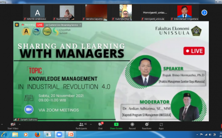 Semarang, 20 November 2021 – Program Magister Manajemen UNISSULA mengadakan kuliah praktisi manajemen sumber daya manusia melalui platform zoom dan dtas Ekonomi UNISSULA, dengan mengusung tema Knowledge Management Industrial Relation 4.0. Acara ini menghadirkan pembicara yaitu Bimo Hermastho, Ph.D. yang merupakan praktisi Manajemen Sumber Daya Manusia dan dimoderatori oleh dosen senior Fakultas Ekonomi yaitu Dr. […]